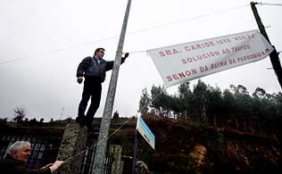 Á marxe das pancartas dos negocios, a plataforma da PO-531 instalou unha xeneral nun terreo propiedade da comunidade de montes de Curro. Segundo explicou onte o seu presidente, Miguel Maquiera, o lema da pancarta xoga coa campaña «Onde vivimos, importa» impulsada pola Consellería de Política Territorial, de quen depende o proxecto de amplicación do viario. Así, lese: «Aos de Curro, onde vivimos, se nos importa. Non ao proxecto dá PO-531».