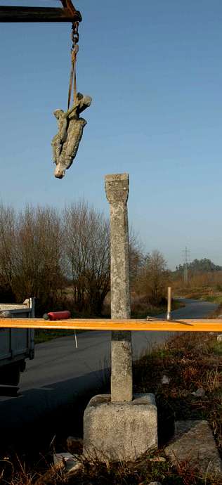 Esa limpieza se hará siguiendo las recomendaciones técnicas que figuran en el informe de Patrimonio que tuvo que solicitar el Ayuntamiento de Barro. El proyecto municipal, redactado por el arquitecto Ricardo Sobral, comprende el traslado del cruceiro a una posición con un firme adecuado para conseguir su verticalidad original.