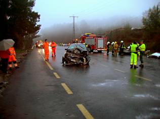 O mozo falecido, F.J.G.F., viaxaba no asento dianteiro dereito dun dos dous turismos que chocaron frontalmente nun tramo recto da estrada con cambio de rasante, e posteriormente chocou contra un deles un terceiro vehículo que viña por detrás con catro ocupantes.