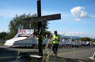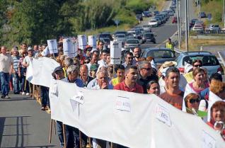 trazado do AVE Ourense-Vigo por Barro . Así foi a posta en escena que máis de trescentas persoas protagonizaron onte pola tarde na N-550 ao seu paso por este municipio pontevedrés.