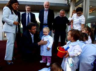 O presidente da Xunta de Galicia, Alberto Núñez Feijoo, escoltado polo presidente da Deputación, Rafael Louzán e a conselleira de Traballo, Beatriz Mato, inaugurou onte a escola infantil de Barro . Mantense deste xeito, a previsión de crear durante este ano 2000 prazas de gardería. Este tema converteuse nun dos cabalos de batalla da Xunta de Galicia. Esta, cifrou o total de prazas que se crearán durante esta lexislatura en 4500 para alumnos de infantil.