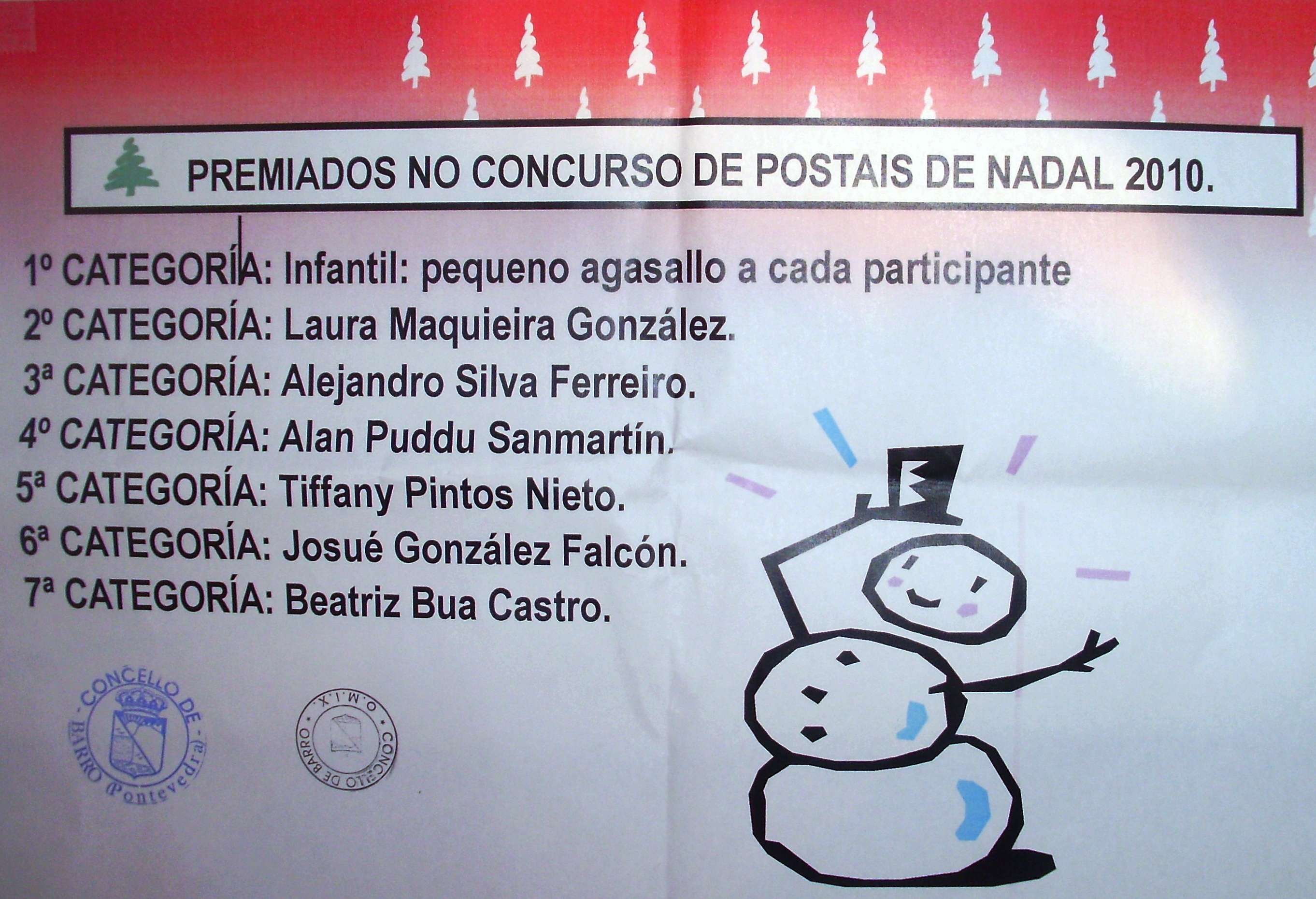 PREMIADOS NO CONCURSO DE POSTAIS DE NADAL 2010