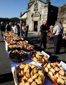 cargo do párroco, Manuel Míguez, das roscas que habitualmente doan as panaderías que fan a repartición na zona: Faro, Santiña, Pondal, Solla, Tenorio e Lorena, manxar que foi degustado polos asistentes. A música estivo a cargo da Banda Xuventude de Barro, en Tomeza, a verbena xa pola tarde, estivo amenizada por orquéstralas D?Tacón e Passarela. Por suposto, non faltaron as misas nin as procesións, tanto da Virxe das Cabezas, que tamén se celebrou no mosteiro de Armenteira, como de San Cibrán.