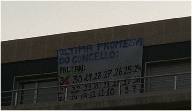 A conta atrás da promesa xa colga da nosa fachada para que non se olvide. Saúdos.