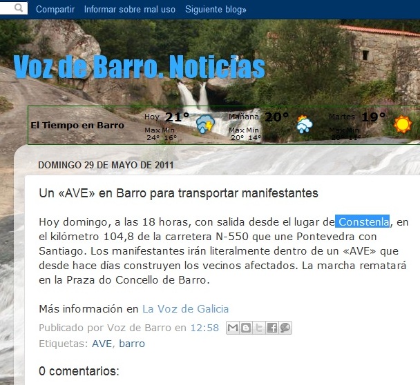 Comunícovos que a nova que publicou hoxe “Voz de Barro” sobre unha manifestación do AVE, non se corresponde coa realidade, senón que se trata dun evento que ocorreu xa hai un ano.