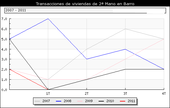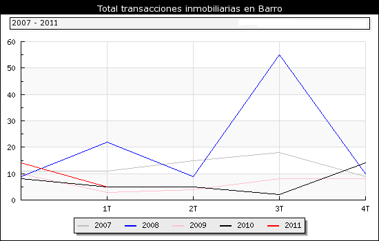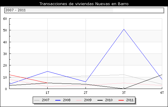 Segun os datos do 1º Trimestre do 2011 publicados polo Ministerio de Vivenda, o nº de transaccións inmobiliarias no municipio de Barro ascende a un total de 5 das cales 5 son transaccións de vivendas novas e 0 de segunda man.