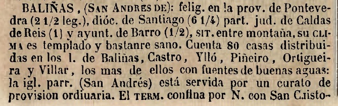 Baliñas no Ano 1845 “Diccionario de España y sus Posesiones de Ultramar” de Pascual Madoc