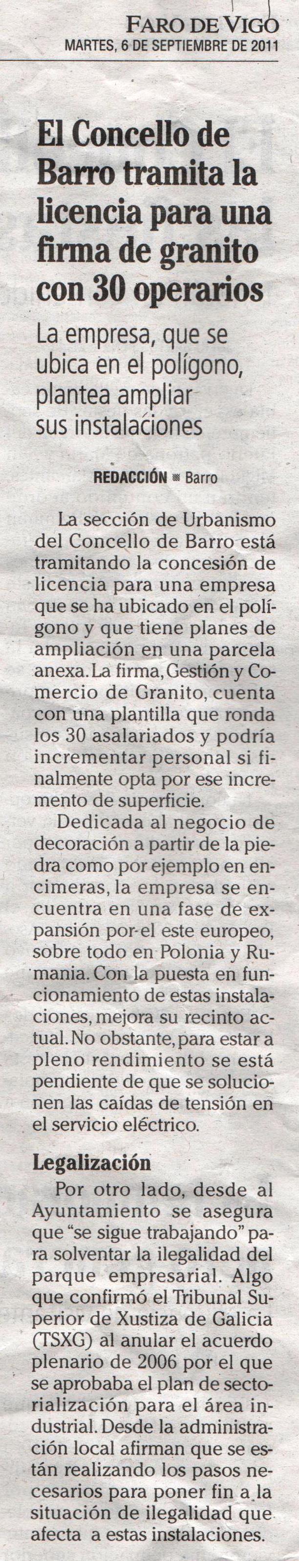 o concello de barro tramita a licenza para unha firma de granito con 30 operarios