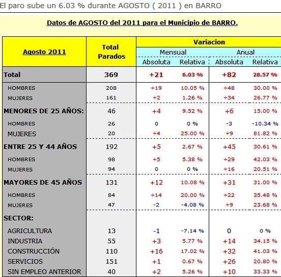 O PARO SUBE UN 6.03 % DURANTE O MES DE AGOSTO EN BARRO