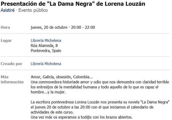 A escritora de Barro Lorena Louzán preséntanos a súa novela “La Dama Negra” o xoves 20 de outubro ás 20:00 na