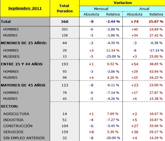 O paro baixa un 2.44 % durante SETEMBRO en BARRO