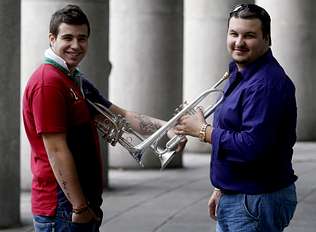 José Luís Represas (Ponteareas, 1970) dirixiunos xunto coa banda e sostiña antes do concerto que «son xente de primeirísimo nivel, vos Messi e Ronaldo galegos». «Eu son Messi, que son do Barça», chanceaba Esteban Batallán Cons (Barro, 1983), que segue co seu acento galego a pesar dos dez anos que leva en Granada e cita o seu parentesco cun clásico: Luís Emilio Batallán. Ao seu lado, Rubén Simeó Xixón (Vigo, 1992) rexeitaba que teña simpatías polo Madrid. Din que había un certo morbo ante o encontro, «aínda que saben que nos levamos ben». Batallán define ao seu xeito o rol de cada un: «Está claro que o é gasolina, é moi virtuoso tecnicamente, moi espectacular, e eu son diésel, ¡ou turbo diésel!, un trompetista máis relaxado», por ser músico de orquestra. Cada un deu o mellor de si.