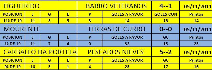 RESULTADOS 11ª XORNADA DOS VETERANOS DE BARRO