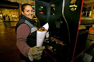 Pero ¿De onde chegan tantos quilos de castañas aos quentes cucuruchos que serven todos eles? Pois hai ata cinco liñas regulares que fornecen os seus trens. María Giovanna, que di que esta ocupación «vai no sangue» -os seus avós xa eran castañeros- cruza a fronteira ata a cidade lusa do Porto. Cada quince días viaxan ou ela ou o seu irmán para traerse 400 quilos de castañas. «Sobre todo as primeiras castañas saíron moi malas este ano en Galicia, e se queremos facer clientela temos que ofrecer algo bo, por iso ímonos/ímosnos a Portugal».