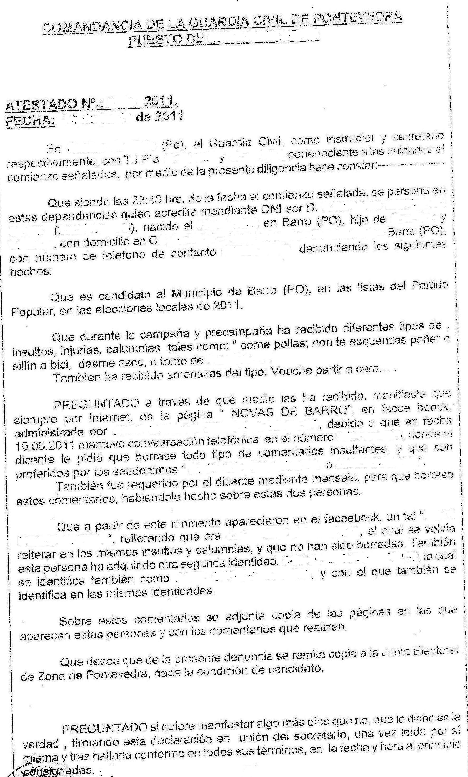 A historia é que ao final isto rematou nunha denuncia por parte dun militante do PP de Barro, o cal se sentiu moi molesto polos comentarios dirixidos cara á súa persoa e partido político que defende, ou quen sabe, tal vez buscaba protagonismo ou saturar máis os nosos xulgados, que certo é que teñen casos máis importantes que resolver. Non sei, cada un que se faga a súa propia idea.
