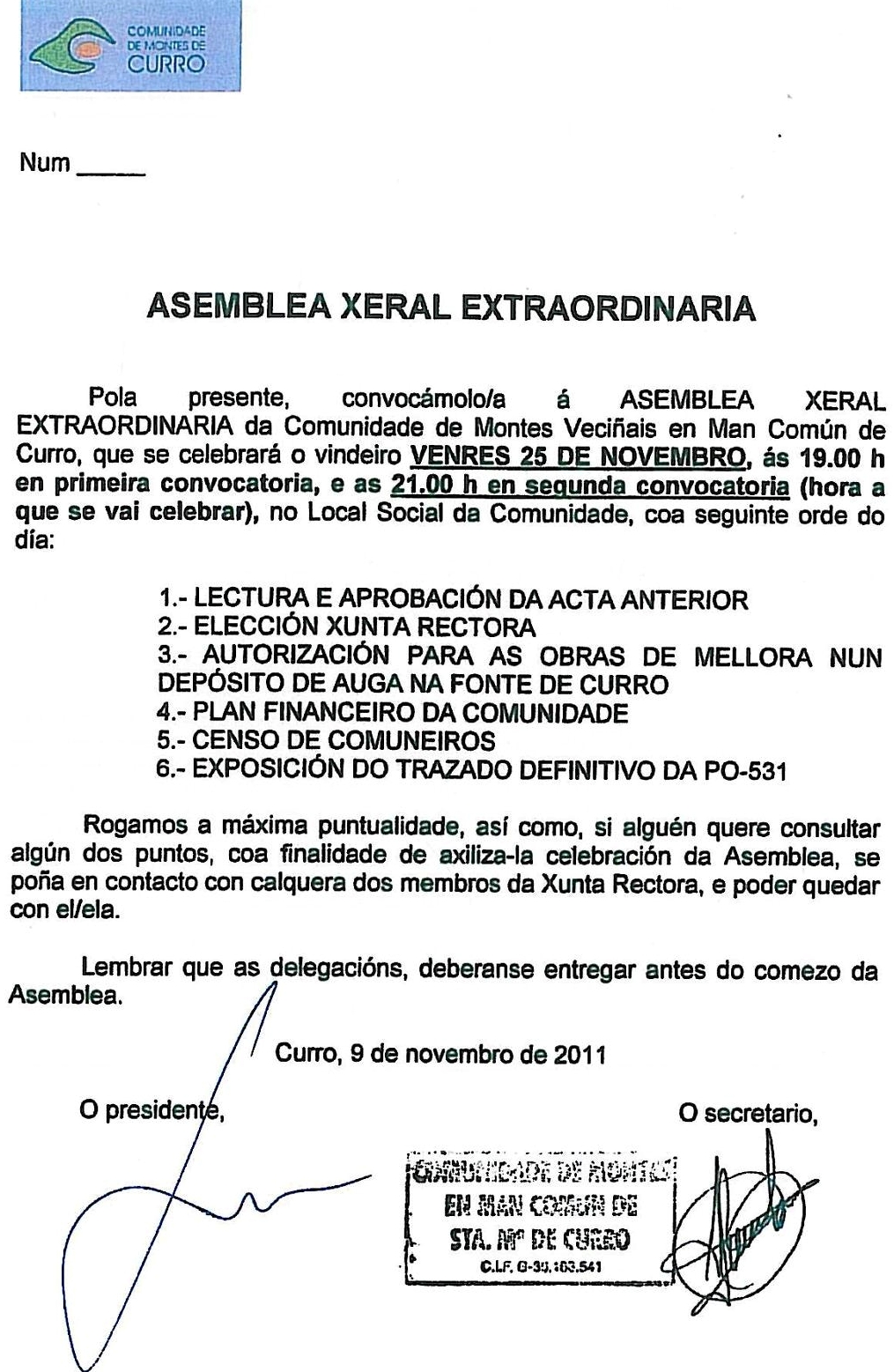 ASEMBLEA XERAL EXTRAORDINARIA DA COMUNIDADE DE MONTES DE CURRO