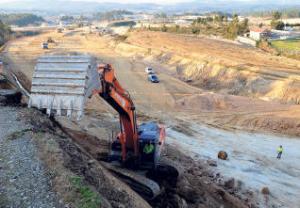Operarios e máquinas ocúpanse estes días do desmonte na antiga subida de Curro pola PO-531, que é por onde se trazarán os viarios que faltan nesta obra. Os traballos centraranse nesa zona durante os próximos meses, e servirán para habilitar os accesos á futura autovía a Baión –que conectará coas dúas circunvalacións de Vilagarcía– e para habilitar a conexión definitiva entre a autoestrada e a Autovía do Salnés.