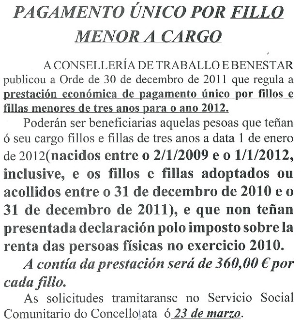 PAGAMENTO ÚNICO POR FILLO MENOR A CARGO