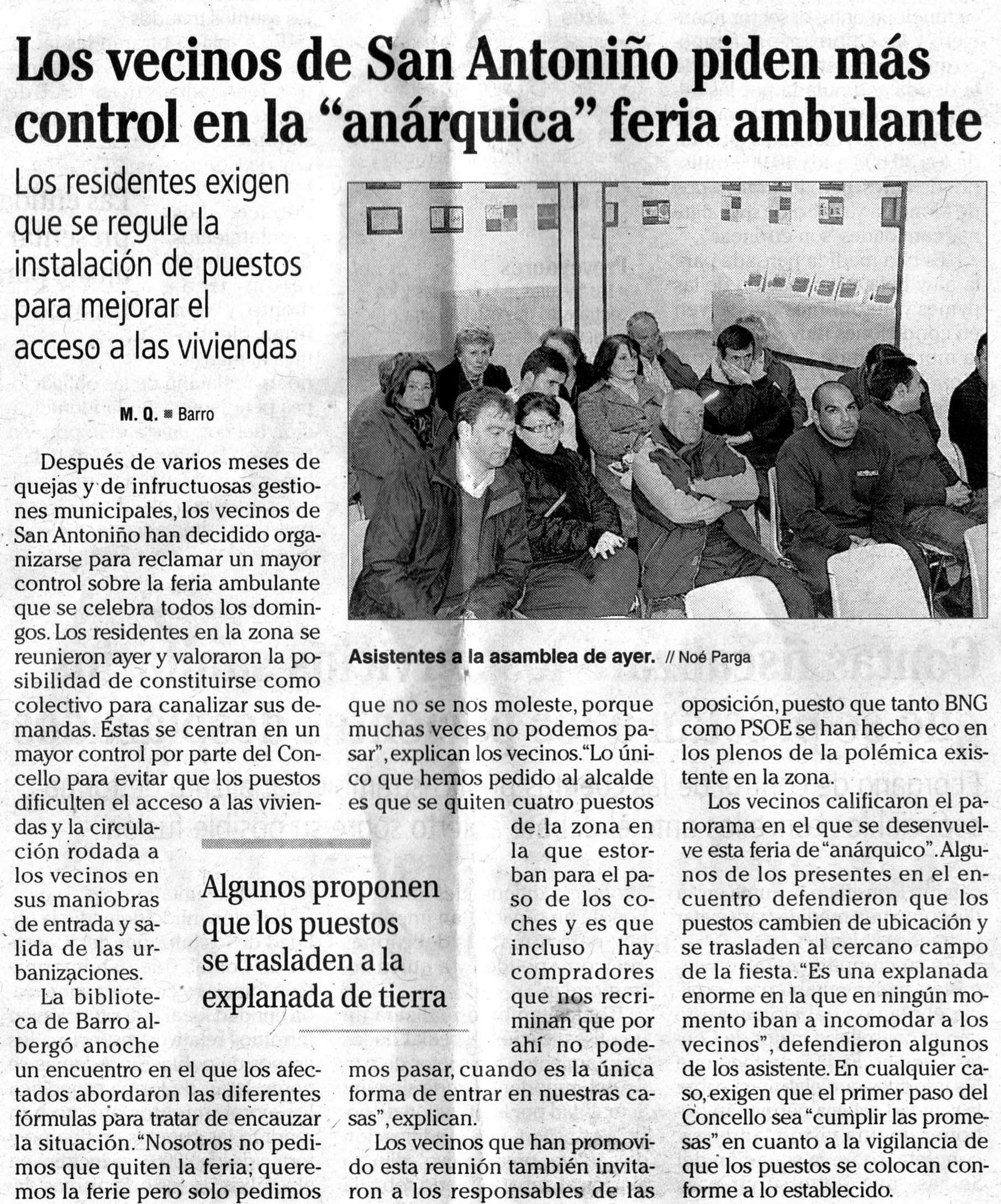 Os veciños de San Antoniño piden mais control na “anárquica” feira ambulante