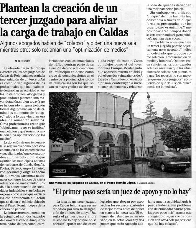 Formulan a creación dun terceiro xulgado para aliviar a carga de traballo en Caldas