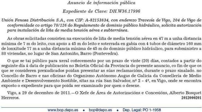 Autorización para instalación de liña de media tensión