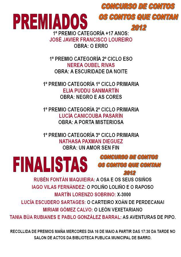 A entrega de premios será o día 16 a partires das 17.30 horas, no salón de actos da biblioteca municipal.