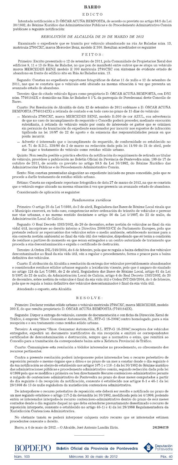 O Concello retira un Mercedes abandonado na rúa das Baladas