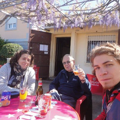 Allí, en Barro, al pie del río Barosa, donde los peregrinos avanzan sin prisa y sin pausa en pos de Santiago, pegadito al hogar de mi familia ; enmarcado por bellas flores de la aun más bella Galicia, e invitándote al corto reposo mientras apuras una cerveza , se encuentra este bar, cuyo nombre ignoro , pero al cual conozco por su gentil dueña.