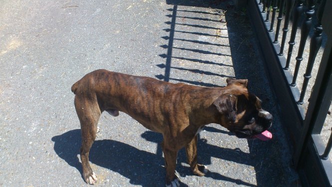 Apareceu un can abandoado na Portela, e un macho, da raza boxer, cor de pel atigrado.