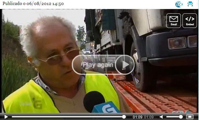 Un camión arde en Barro, cando levaba produtos téxtiles en dirección a Santiago
