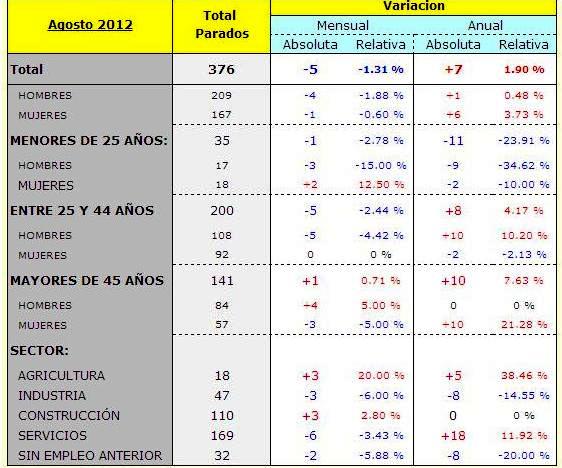 O paro baixa un 1.31% durante Agosto en Barro