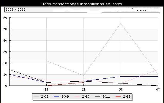 En todo o ano 2012 o n.º de transaccións no municipio de Barro foi de 3 un -57,14% menos que no mesmo período do ano anterior ata o 2º trimestre (7 Transaccións).