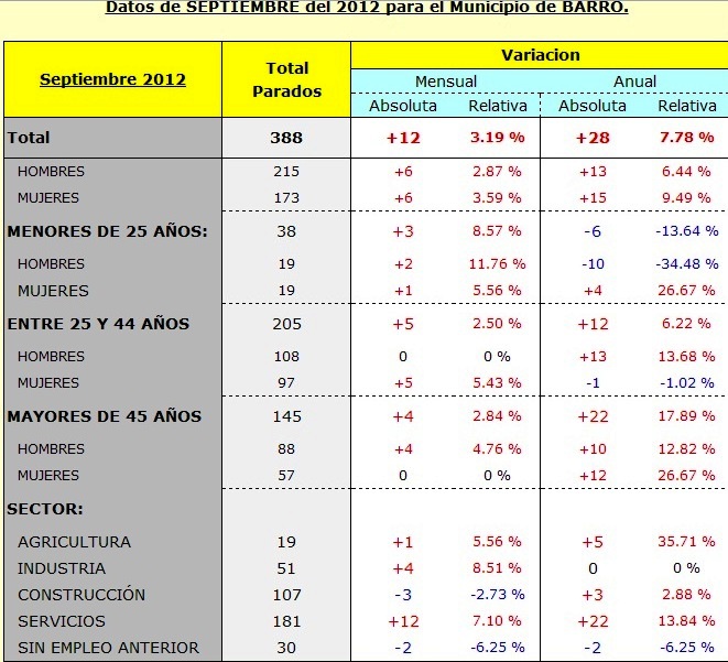 O paro sobe un 3.19% durante SETEMBRO en BARRO