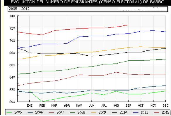 estranxeiro 725 emigrantes de orixe ou residencia no concello de Barro.
