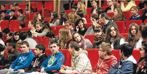 Máis de 500 alumnos dos institutos de Educación Secundaria de Poio, do Monte dá Vila, do A Xunqueira II, do de Barro, do Luís Seoane, do Aquis Celenis e do colexio Os Salgueiros acudiron onte ao Pazo dá Cultura para gozar da representación ?Ou fútbol é así?, incluída dentro da programación teatral da Concellaría de Cultura