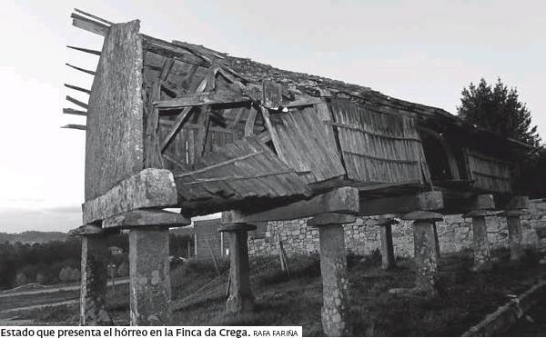 A situación, coñecida fai dúas semanas, remóntase ao pasado 18 de setembro, cando o Concello de Barro recibiu un requirimento da Dirección Xeral de Patrimonio, no que se daba conta da situación de deterioración que padece o hórreo do pazo da Crega, que se atopa a escasos metros da restaurada edificación e que está a piques de caerse.O texto recibido no Concello indicaba que «realizando visita de inspección polo exterior do Pazo de San Antoniño, en Barro, (un funcionario) observou que ou hórreo que se atopa a carón do mesmo se atopa nun estado de total abandono con parte do tellado e un dous laterais caídos».O escrito de Patrimonio informaba de que sobre o estado desta mesma dotación produciuse unha denuncia no ano 2004, cando a titularidade aínda era particular, e que, tras detectarse un cambio na mesma (o Concello é actualmente o dono), remítese un novo informe sobre o seu abandono. O alcalde, José Antonio Landín, admitiu entón que o estado do piorno non é o desexable, pero que non tiña claro que tivese tanto valor, nin que esta fose unha prioridade actualmente para o Concello.