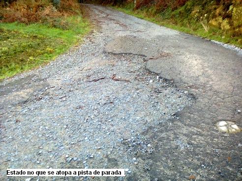 • A pista que comunica a estrada do San Amaro co lugar de Parada. Trátase dun vial que leva moitos meses intransitábel e, a pesar das reiteradas denuncias dos veciños afectados, nin Fomento o repara nin o goberno municipal presiona para que o faga.