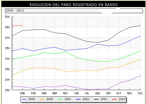 Suma e segue,O paro sobe un 0.22 % en Barro durante xaneiro.458 parados