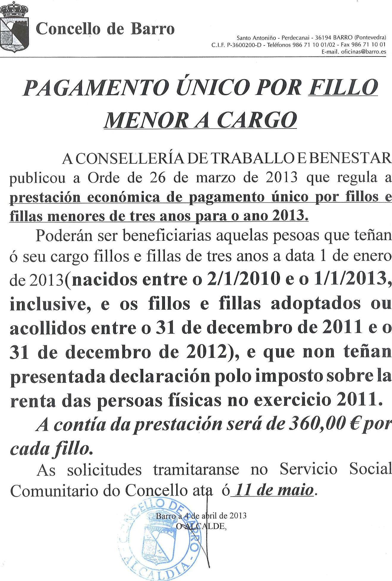 PAGAMENTO ÚNICO POR FILLO MENOR A CARGO