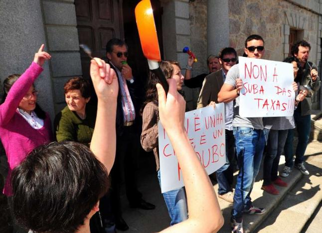 Preto dunha trintena de veciños de Meis reuniuse a mediodía de onte ante a fachada da Casa Consistorial para reivindicar a través dunha cazarolada, promovida polo BNG, a súa oposición á drástica suba dalgunhas taxas municipais, que se incrementou neste exercicio ata nun 50% nalgúns casos.