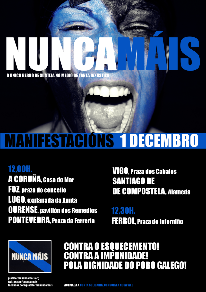 convocada nun momento no que “a voz de Nunca Máis é preciso que estea aí” e no que a plataforma cidadá é “o único berro de Xustiza non medio de tanta Inxustiza”, como reza o cartel que convoca a protesta.