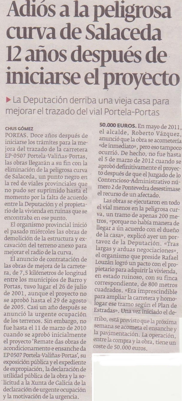 ADEUS Á PERIGOSA CURVA DE SALACEDA 12 ANOS LOGO DE INICIARSE O PROXECTO