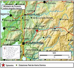 Segundo os datos do Instituto Xeográfico Nacional, o movemento sísmico rexistrouse ás 19.57 horas entre a latitude 42.5144 e a lonxitude -8.5335 e alcanzou unha magnitude de 3,2 na escala Richter. O tremor tivo a súa orixe a 24 quilómetros de profundidade, pero se deixou sentir de forma bastante clara nas Lagoas e incluso máis lonxe.