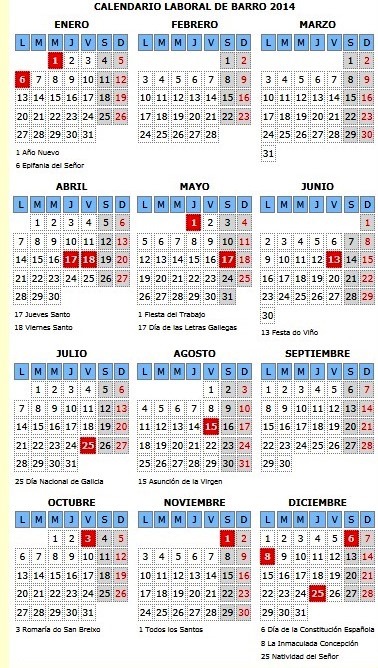 CALENDARIO LABORAL DE BARRO 2014