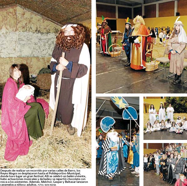 A programación foi organizada polo Concello de Barro coa colaboración da Asociación de Nais e Pais de Alumnos do colexio Amor Ruibal, o grupo de baile do mesmo nome e a agrupación de Protección Civil. Logo de realizar un percorrido por varias rúas de Barro, os Reis Meigos desprazáronse ata o Polideportivo Municipal, onde tivo lugar un gran festival. Alí celebrouse un belén viviente, houbo actuacións musicais e de baile e repartiuse chocolate con rosca aos asistentes. Ademais, Melchor, Gaspar e Baltasar lanzaron caramelos a nenos e adultos.