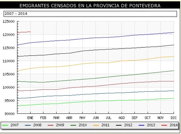 A continuación mostramos a evolución dos últimos anos do número de emigrantes censados no estranxeiro de Barro, e de toda a provincia de Pontevedra.
