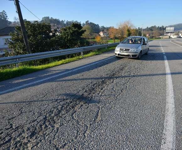 estado que presenta este vial, jalonado de baches e grietas. O desgastar é evidente nesta estrada que ademais soporta un elevado tráfico de vehículos pesados, xa que por ela pasan máis de 1.500 camións ao día, segundo os datos de aforo da propia Xunta. Os últimos temporais acabaron por empeorar o estado dun firme que pide a gritos unha mellora.