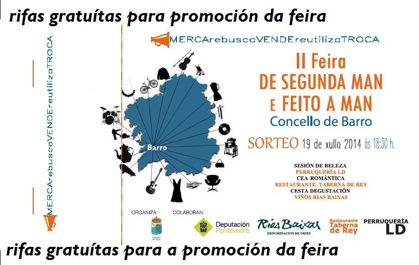 Xa podedes pasar pola OMIX, Casa de Rey, Peluquería LD e recoller a vosa rifa gratuíta para que vos toque unha cea romántica, unha sesión de beleza ou unha cesta de viños Rías Baixas. Recordade que a inscripción para poñer un posto o día 19 tendes que deixala aquí, na oficina de información xuvenil do Concello de Barro, que está no edificio da Biblioteca Pública (é gratuíto).
