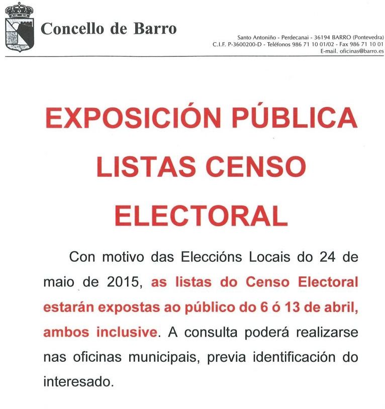 EXPOSICIÓN PÚBLICA LISTAS CENSO ELECTORAL