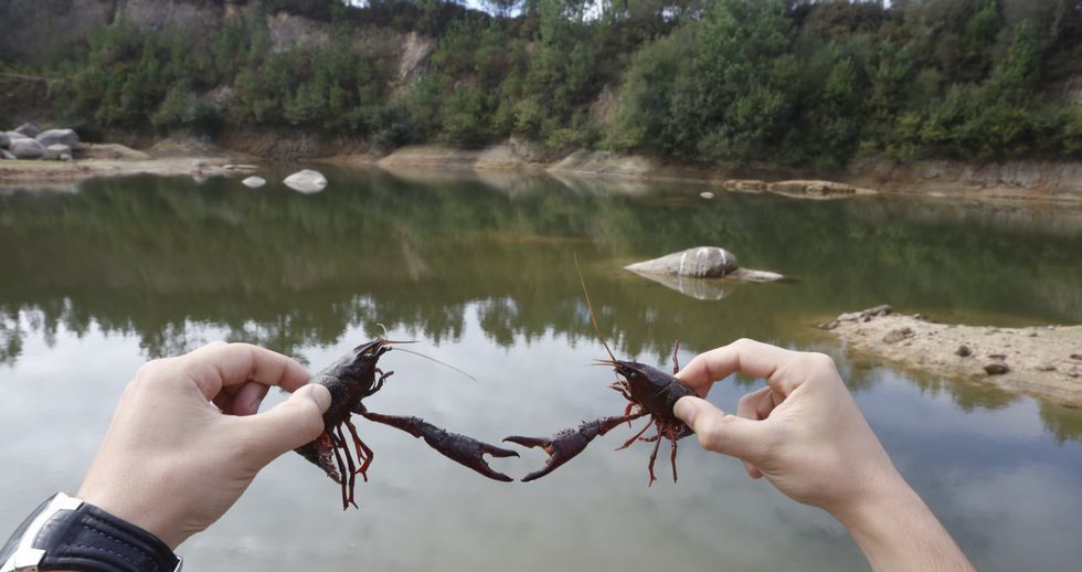 Un antigo xacemento de xabre en Agudelo que hai dúas décadas traballaba a pleno rendemento é agora unha lagoa na que proliferan uns coñecidos invasores dos ríos e encoros españois, o cangrexo vermello americano.